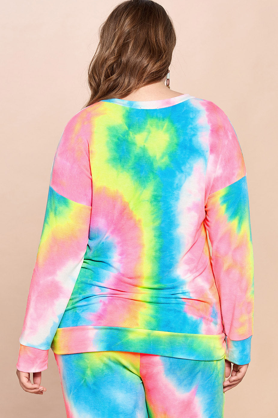 This tie dye printed french terry top featuring a round neckline, long sleeves, and dropped shoulders is the perfect go to outfit!